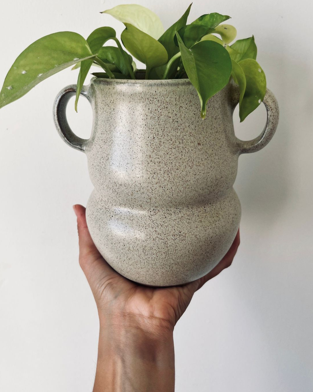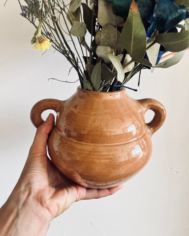 Florero Canela (con manijas) altura: 15.5 cm x ancho: 19 cm con manijas