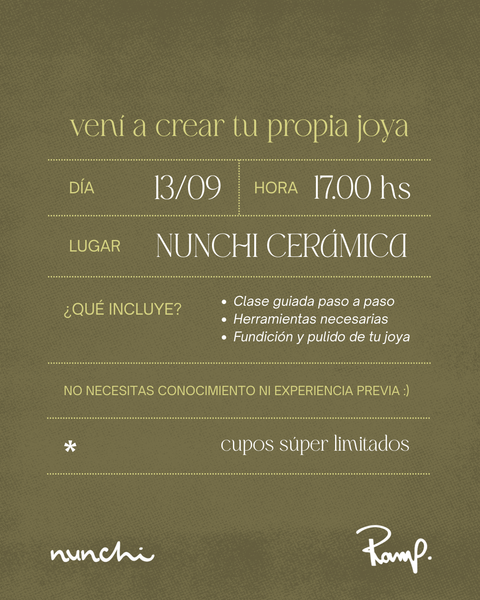 *El curso incluye la fundición y pulido de 1 (una pieza) en bronce. Si deseas fundirla en plata, o hacer otra pieza adicional, se deberá abonar un costo extra.